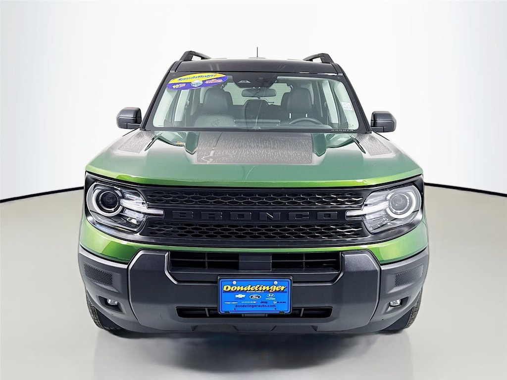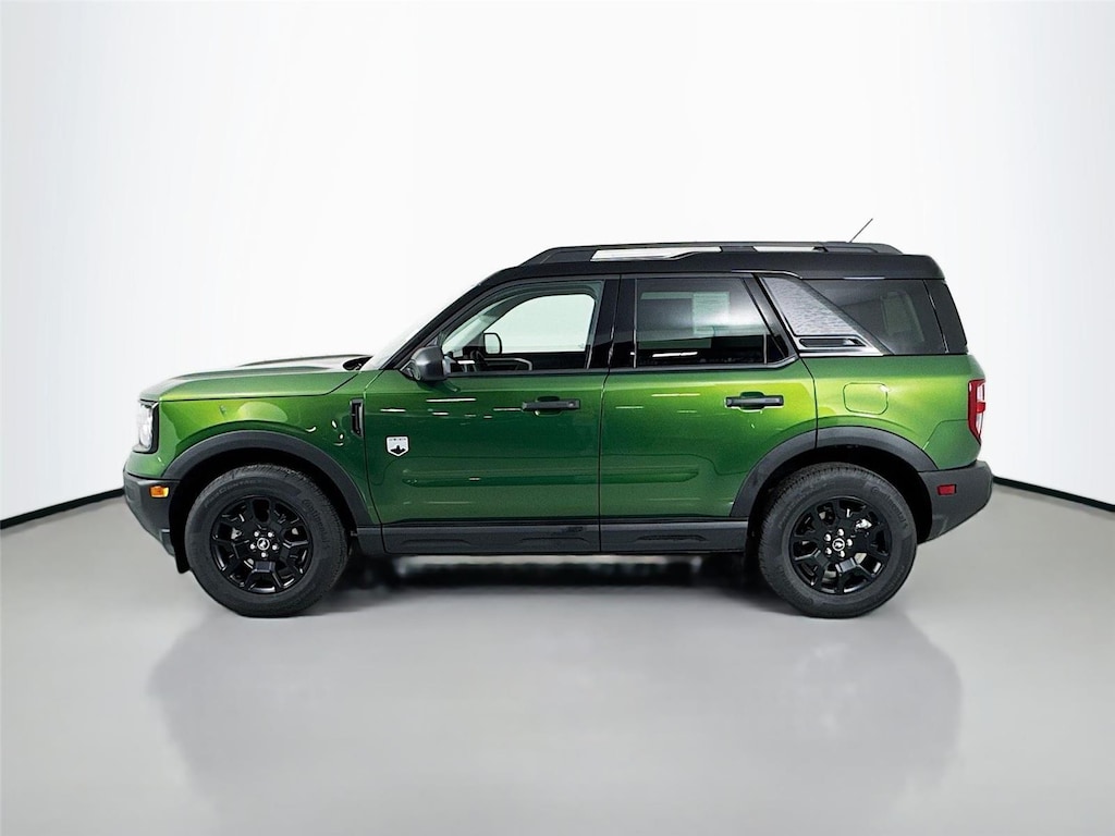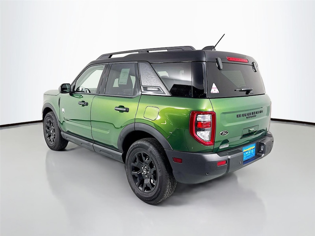 - Includes cargo mat, front and rear floor liners (without carpet mats), textured matte black hood graphic, Carbon Black grille with black painted Bronco lettering, painted shadow black roof, premium-trimmed sport contour bucket seats, front driver/passenger seat back map pockets, unique badges with black accents, 17 inch matte black-painted aluminum wheels, 225/65R17 102H all-season tires, and modified smoked chrome Ford oval on liftgate with black painted Bronco Sport lettering.