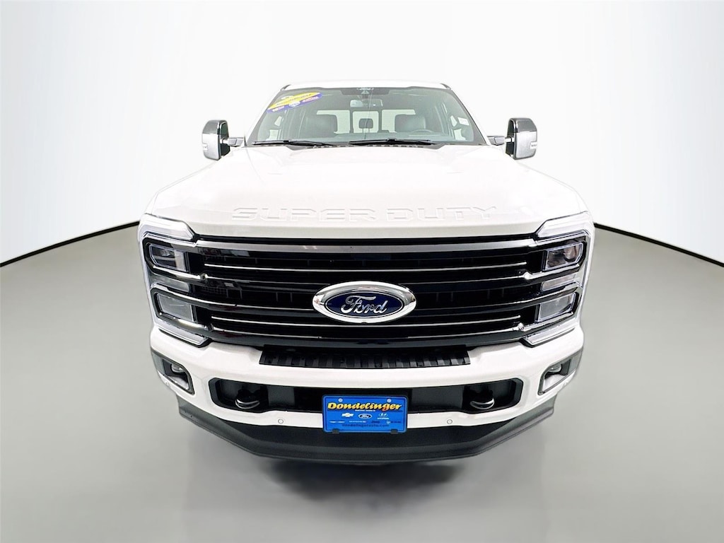 Unleash the power of the 2025 Ford Super Duty F-350 SRW Platinum, with its commanding 8-cylinder engine and TORQSHIFT 10-speed automatic transmission, expertly designed for unparalleled performance and control. Cloaked in the breathtaking Star White Metallic Tri-Coat, this four-wheel-drive masterpiece exudes sophistication and brilliance at every turn. Step inside to discover the exquisite Black Onyx/Platinum Blue interior that elevates your driving experience to an extraordinary realm of luxury and comfort.