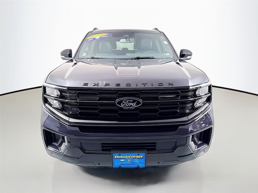 - Includes 22 inch x 9 inch Magnetite painted aluminum wheels with P275/50R22 all-season tires, Platinum badge in black on tailgate and Expedition lettering in black on hood, carbon black front bumper/fascia, black belt molding, black roof rails, signature grille lighting, black bezel headlamps with ebony trim applique, illuminated rear spoiler, fixed front air dam, Black Onyx perforated leather-trimmed seats, Stealth interior trim package, and rear side laminated glass.