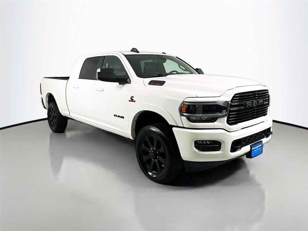 ENGINE: 6.7L I6 CUMMINS HO TURBO DIESEL, TRANSMISSION: 6-SPEED AUTOMATIC AISIN AS69RC HD, QUICK ORDER PACKAGE 21H LARAMIE, 3.73 AXLE RATIO, WHEELS: 20 X 8.0 BLACK PAINTED ALUMINUM, TIRES: LT285/60R20E OWL ON/OFF ROAD, MONOTONE PAINT, BLACK, LEATHER TRIMMED BUCKET SEATS, GVWR: 12,300 LBS, BED UTILITY GROUP, TOWING TECHNOLOGY GROUP B, NIGHT EDITION, COLD WEATHER GROUP, PROTECTION GROUP, LARAMIE LEVEL B EQUIPMENT GROUP, 220 AMP ALTERNATOR, ENGINE BLOCK HEATER, 5TH WHEEL/GOOSENECK TOWING PREP GROUP, ADAPTIVE STEERING SYSTEM, FRONT LICENSE PLATE BRACKET, MOPAR SPRAY IN BEDLINER, POWER DEPLOYABLE RUNNING BOARDS, LED BED LIGHTING, RADIO: UCONNECT 5 NAV W/8.4 DISPLAY, CTR STOP LAMP W/CARGO VIEW CAMERA, TRAILER SURROUND VIEW CAMERA SYSTEM